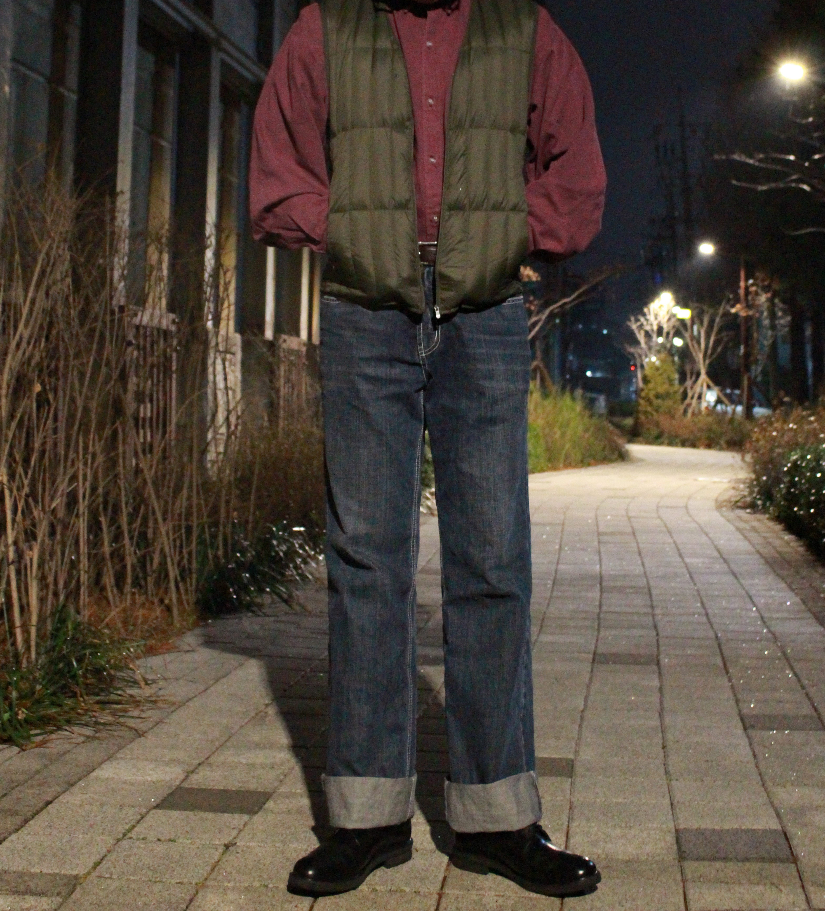 아랫쪽으로 갈 수록 통이 약간 넓어집니다. 저는 아랫쪽을 두번 정도 롤업을 해보았습니다. 롤업을 하게 되면 지저분함을 더 줄여주고, 깔끔하게 보여 다리가 조금은 더 길어보일수 있게 도와줍니다. 상황에 따라서 롤업을 안해야 더 이쁠때가 있는것 같아요!
