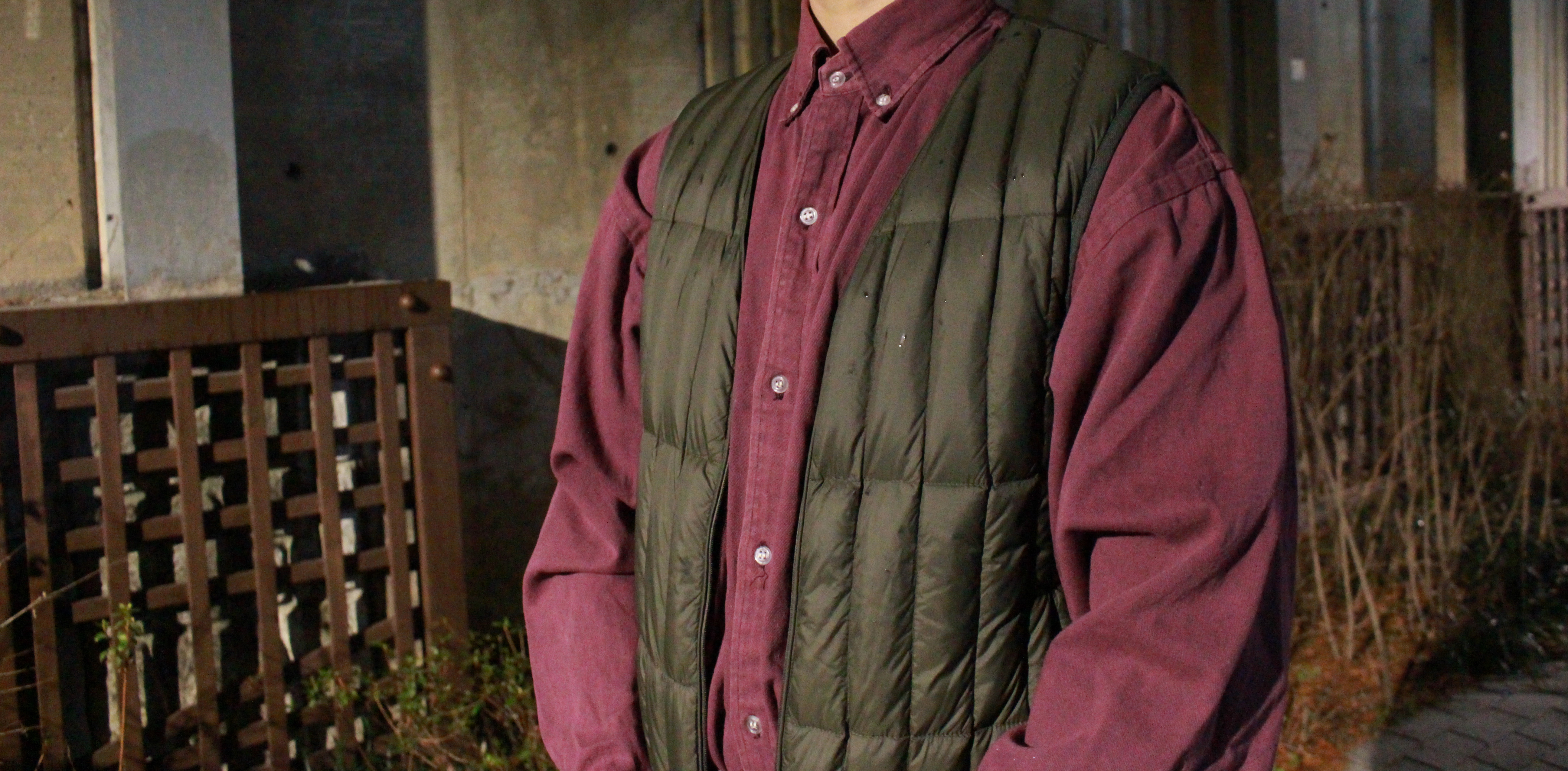 우선 상의를 먼저 말씀드리자면, 톤다운된 짙은 보라색 폴로 셔츠와 그 위에는 카키색 가벼운 경량 패딩을 매치해줬습니다. 빈티지한 감성을 내기 위해서는 카키색은 필수 인것 같네요! 평소에도 카키색을 엄청 좋아하기 때문에 즐겨 입는 경량 패딩입니다.